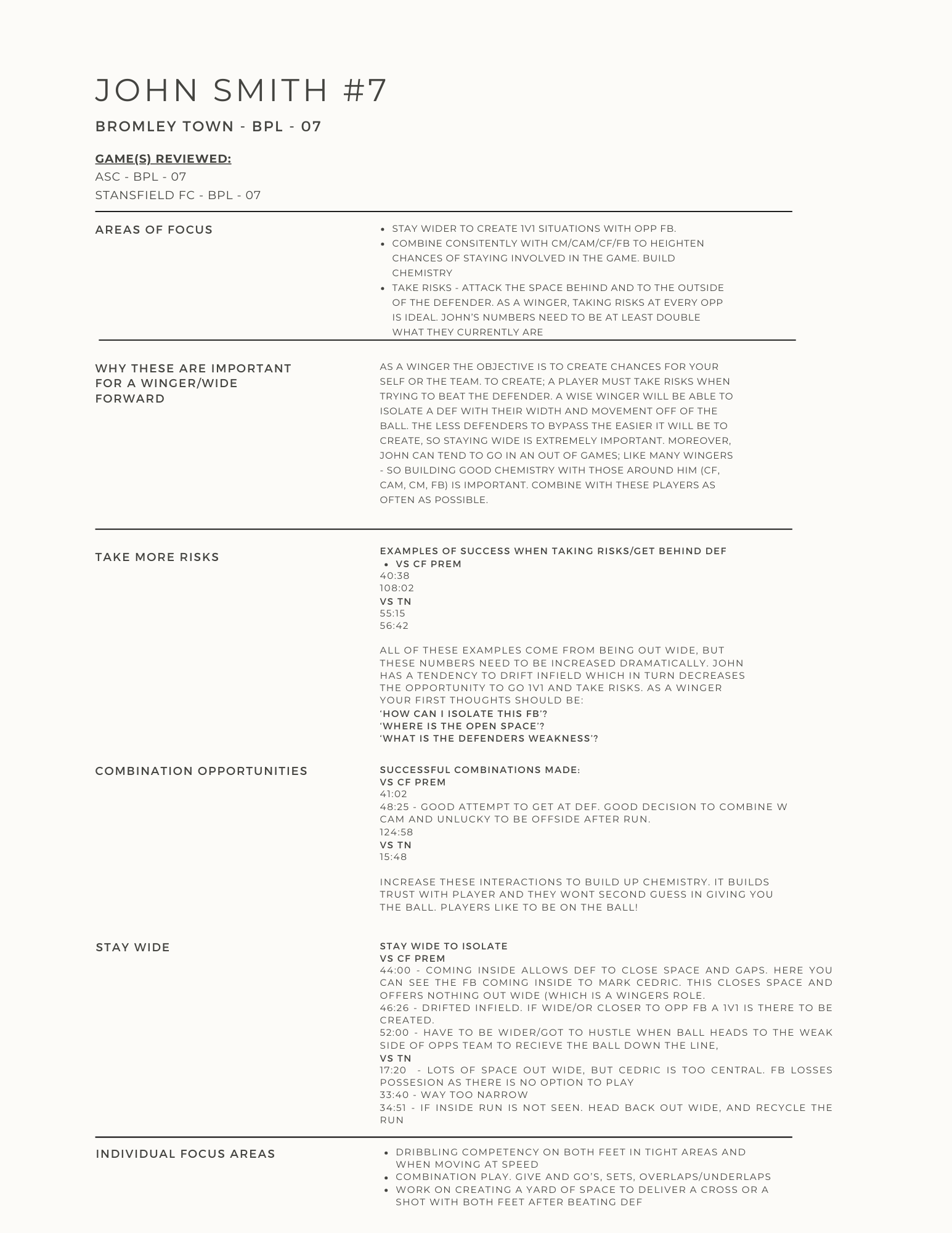Introducing our Detailed Player Report - Pro, a combination of our Player Report and video analysis. Our Analysts will create a video blog (Vlog) for your player, highlighting key moments during their game. This Vlog will provide a visual understanding of your player's performance and interactions on the field.